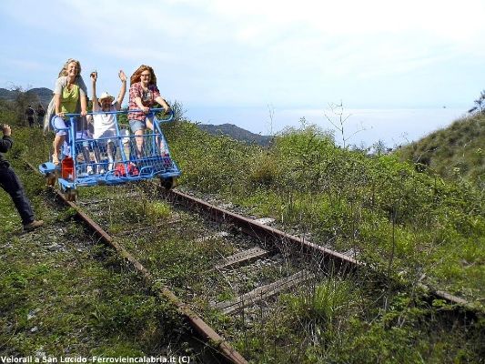 Chiaramente tutto ciò non lo escludiamo a priori, ma sicuramente ad oggi, viste le condizioni della ferrovia e delle relative infrastrutture, l’ipotesi più realistica è una riqualificazione minimale dell’armamento, delle opere d’arte maggiormente danneggiate dall’incuria e di alcuni fabbricati, per permettere l’avvio del cicloturismo. Ma ci riferiamo ad un cicloturismo molto particolare, del quale abbiamo discusso con l’amico Marcello Carbone di FIAB, molto diffuso in altre nazioni europee ma, purtroppo, ancora poco conosciuto in Italia (anche se ancora per poco): ci riferiamo ai simpaticissimi Velorai. I velorail sono dei quadricicli su rotaia, che permettono di visitare in modo alternativo un territorio, su dei veri e propri “tandem ferroviari”!