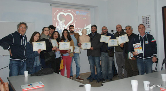 I partecipanti hanno appreso, utilizzando appositi manichini (neonato, bambino e adulto) la tecnica di Rianimazione Cardio-Polmonare per affrontare una situazione d’emergenza, utilizzando il Defibrillatore Semiautomatico Esterno (AED) su una persona adulta priva di respiro o di battito cardiaco, in attesa dell’arrivo del Servizio Medico d’Emergenza 118, secondo quanto previsto dalle raccomandazioni ILCOR 2010. Al termine delle prove di valutazione finali, i partecipanti hanno ricevuto un attestato di abilitazione Operatore BLS-D e successivamente riceveranno dalla sede nazionale e il Tesserino di Operatore. “Il Corso BLSD è un vero strumento Salvavita in caso di arresto cardiaco – afferma il dott. Aloisio – la cronaca di questi giorni ci ricorda che l’arresto cardiaco non è un evento poi così raro, anche in soggetti giovani, sportivi ed in apparente buona salute”.