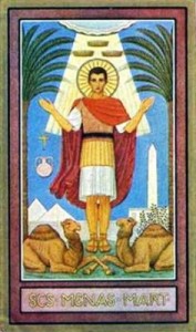 In suo onore, sulle riva del lago Mareotis, a Bumma (Karm Abu-Mina), presso Alessandria, fu eretto un santuario che ben presto divenne meta di grandi flussi di pellegrinaggi, fino all’invasione araba del VII secolo. Intorno al luogo di culto fu edificata una città, detta la “Lourdes Paleocristiana”, la quale, insieme ad esso, nel XI secolo fu saccheggiata e distrutta dai beduini. Riguardo le reliquie, alcuni studi recenti sostengono che esse furono portate tra molte difficoltà al Cairo, dove sarebbero ancora conservate nella Chiesa a lui dedicata. Tra il 1905 ed il 1908 furono eseguiti degli scavi che riportarono alla luce le rovine della basilica di Mareotis, del suo monastero e delle sue terme. Vennero inoltre rinvenute delle fiale, le “Ampolle di San Mènas”, su cui è riportata l’iscrizione “Ricordo di San Menna”: questi piccoli recipienti erano usati per prendere l’acqua da un pozzo vicino al reliquiario. Altre fiale simili a queste sono state ritrovate persino in Europa e in Asia (alcuni ritengono che servissero anche a contenere l’olio delle lampade che ardevano nel santuario). A testimonianza di quanto San Menna sia venerato in Egitto occorre ricordare che nel 1943 Cristoforo II, patriarca ortodosso d’Alessandria, attribuì proprio a lui il merito della sconfitta delle truppe di Rommel ad El Alamein. Propose così di restaurare le rovine di Mareotis in onore e memoria dei caduti in battaglia. Esiste un altro San Menna eremita vissuto a Benevento sul monte Taburno ma risale a circa due secoli più tardi. Cirò è stata sempre meta di Arabi, Turchi e Bizantini, addirittura anche i Normanni veneravano questo Santo, e probabilmente sono stati questi popoli a farci conoscere questo Santo tanto misterioso e miracoloso che oggi domina il centro storico cirotano.