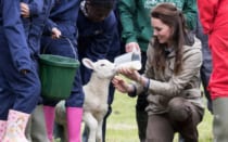 Kate Middleton in versione "contadina" in una fattoria. FOTO