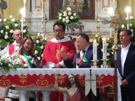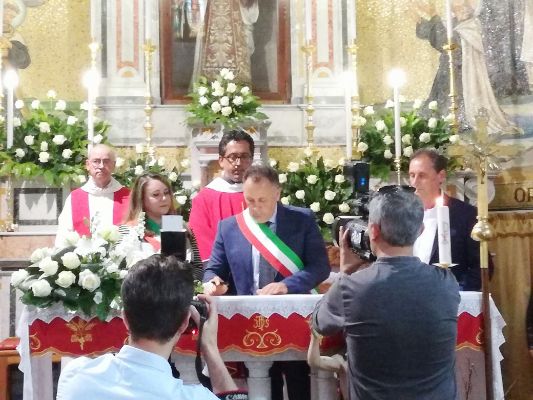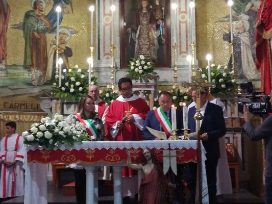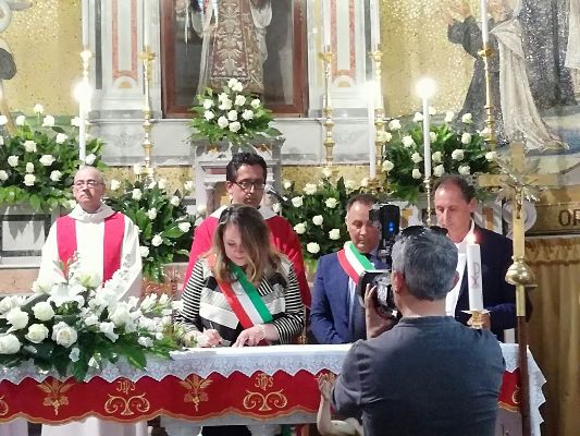 Gemellaggio tra i Comuni di Paterno Calabro con il Sindaco Lucia Papaianni originaria di Cirò Marina e con il Comune di Cirò Marina, insieme al Sindaco Nicodemo Parrilla. L’occasione è stata data dalla comune condivisione della fede nel rispettivo santo patrono. Nella nota diffusa si legge infatti: “la profonda devozione per il Santo patrono della nostra città, San Cataldo Vescovo” sarà sancita con un patto di gemellaggio con il Comune di Paterno Calabro, il cui Patrono e Protettore è San Francesco da Paola.” Le due comunità, si sono ritrovate, come da programma intorno alle 16 di mercoledì scorso, per sancire il patto di gemellaggio alla presenza delle autorità politiche, religiose e militari e sottoscrivere il patto di gemellaggio per poi, dopo la santa messa, pur appartenendo a culture diverse, si sono uniti in un’unica spiritualità e devozione per San Cataldo e San Francesco da Paola percorrendo in processione le vie della città.