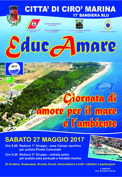 L’Amministrazione comunale di Cirò Marina ha organizzato per sabato 27 maggio 2017 una giornata ecologica per sensibilizzare e promuovere una cultura positiva per i diritti dell’ambiente, in collaborazione con la Lega Navale che, come ogni anno, organizza la pulizia dei fondali puliti.
