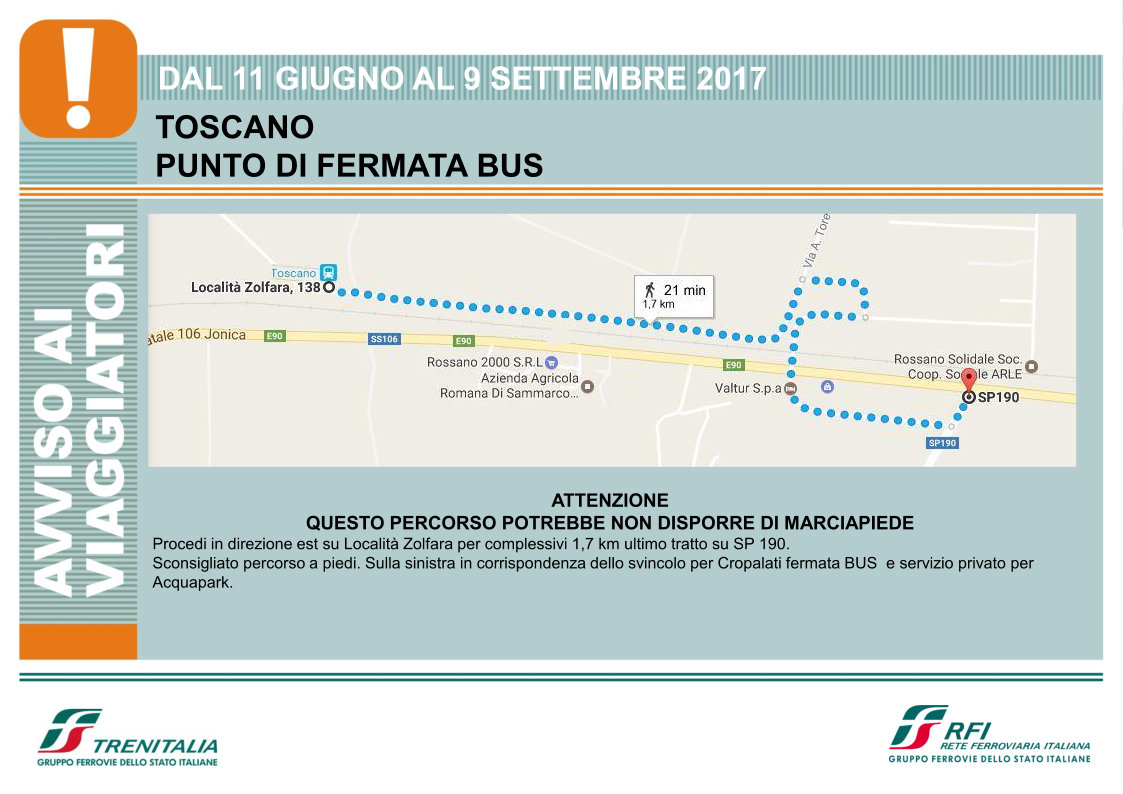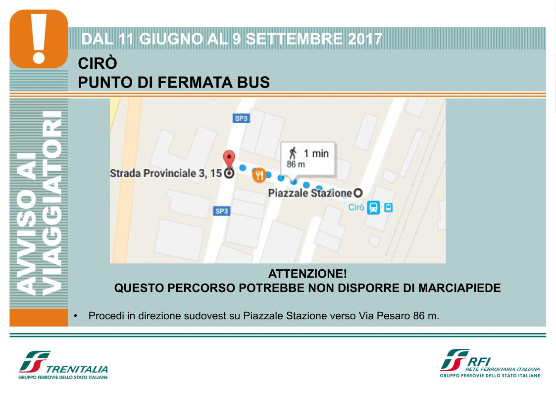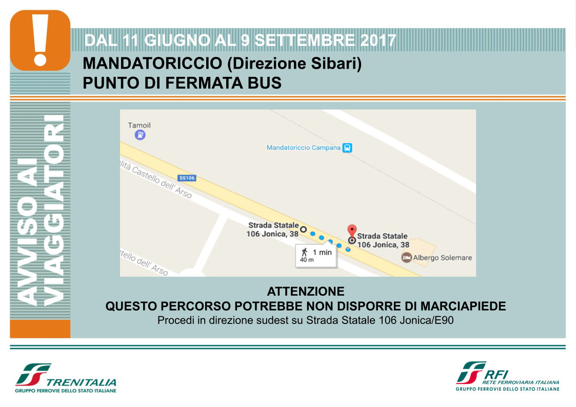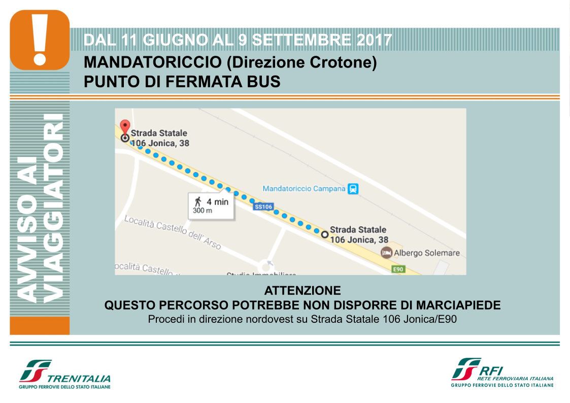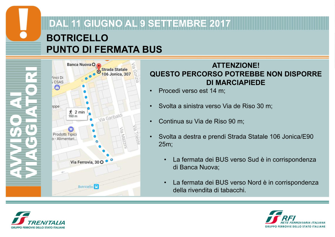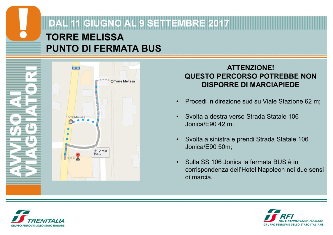 Da domenica 11 giugno e fino a lunedì 9 settembre 2017, la Ferrovia Jonica resterà chiusa per lavori programmati di potenziamento e manutenzione. Resterà operativa con orario regolare fino alle ore 24.00 di Sabato 10 giugno.