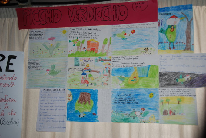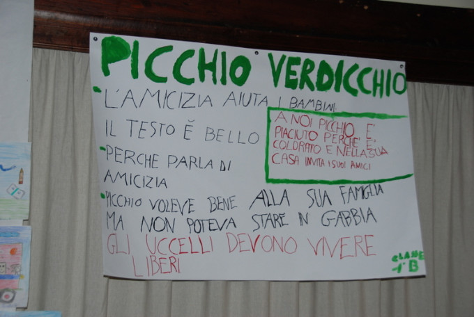 I bambini hanno letto il testo “Picchio Verdicchio” della scrittrice Patrizia Fulciniti, narratrice appassionata, insegnante e scrittrice che vive tra bambini, libri e gatti in uno sperduto paesino della Calabria dal nome di fiaba: Vallefiorita. Il libro è una filastrocca sulla libertà, sull’amicizia e sull’amore, in italiano e inglese, che ha conquistato i nostri piccoli lettori; è stato letto più volte, commentato, illustrato, sono stati realizzati tanti cartelloni e un video, divertente ma nello stesso tempo molto coinvolgente. La scrittrice si è complimentata con i bambini per le emozioni che erano riusciti a trasmetterle. Molte sono state le domande che i bambini le hanno posto con semplicità e spontaneità dimostrando di aver imparato tanto dalla storia di Picchio Verdicchio. Il tutto si è concluso con autografi, applausi e tante foto ricordo.