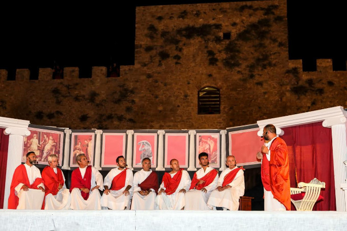 In una straordinaria serata che ha fatto rivivere il viaggio nella storia con la guerra per la civiltà, la Pro Loco di Strongoli, in collaborazione con i Gruppi Teatrali, le Parrocchie, ed il patrocinio del Comune di Strongoli ha presentato la rappresentazione “l’assedio di Petelia”, dramma storico in tre atti scritto dal prof. Giovino Iannotta. Una ricostruzione dai contesti storico culturali che hanno visto protagonista Petelia nel 209 a. C. in contemporaneità con la seconda Guerra Punica (218-202 a. C.). Resistenza la parola chiave che ha contraddistinto Petelia dagli altri popoli Bruzi e Lucani che si sono arresi al nemico Annibale. Tutto molto bello e suggestivo, con alle spalle l’imponente e maestoso Castello, la scenografia da lode, gli attori dei veri artisti, le musiche da brivido, il coro delle donne magnifiche , una gran bella interpretazione. La spiccata cultura ed intelligenza del Professore Giovino Iannotta che con voce commossa ha saputo dare una descrizione chiara del testo e poi le musiche straordinarie del Prof. Alfredo Cortese hanno regalato ad una piazza gremita tante emozioni. In questo contesto storico, è stato ambientato l’incontro tra Caio Megonio, patrono della Città, ed il Consiglio dei Decurioni, i funzionari che si occupavano di amministrare e governare il municipio per conto del potere centrale di Roma, affinchè si decidesse il come fronteggiare Annibale cartaginese.