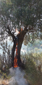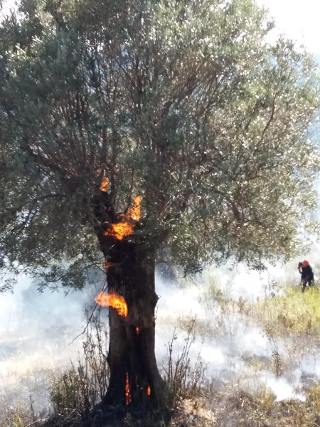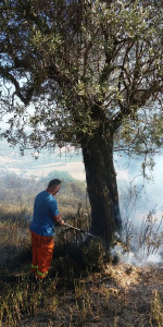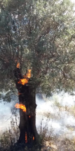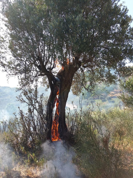 Caldo, fumo acre, lingue di fiamme hanno avvolto i campi attorno l’abitato a partire dalla zona Campanise fino ad arrivare sotto le finestre delle abitazioni in via De Gasperi, fino ad arrivare alle abitazioni in zona Gabbina. La gente è scesa per strada, chiudendo porte e finestre per la paura che le fiamme potessero entrare nelle abitazioni. E’ mancato davvero poco che le fiamme entrassero nelle abitazioni, per fortuna l’operato dei vigili e l’elicottero hanno neutralizzate le fiamme salvando così le abitazioni. Centinaia di ettari di terreni sono andati in fiamme, tra queste numerosi uliveti e vigneti, il fuoco ha lambito anche diversi campi di frumento neutralizzato prontamente dalla squadra di Calabria Verde di Pagliarelle/Petilia. Anche una stalla in zona Campanise ha rischiato di andare in fiamme, così come le porcilaie sempre nella stessa zona, hanno rischiato di essere distrutte dal fuoco. Per fortuna nessun danno alle persone ma tanto invece è stato arrecato alle piante di ulivi, completamente distrutti dal fuoco dove le fiamme avvolgevano come in una danza della morte gli ulivi secolari. Alcuni di questi con tanta pazienza sono stati spenti dagli operai di Calabria verde, visto le aree impervie.