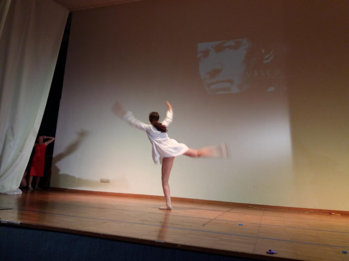 Moderno e trasgressivo invece la danza del corso  di principianti di video dance  dal titolo: “Si no tu estate”  seguite dall’insegnante  delle discipline classico avanzato,  video dance, musical e contemporaneo  Nadia Mele, una grande artista del campo. Bella interpretazione dell’assolo del ballerino Francesco Lerose per carattere, eleganza,  e preparazione che ha suscitato emozioni. Ancora un altro assolo questa volta interpretata dalla ballerina Chiara Vetere, un cigno delicato e sensuale, acrobata e  ben coordinata, un viso straordinariamente interpretativo che ha Meravigliato il pubblico presente. Molto impegnativo è stato il viaggio sentimentale dedicato a Vasco Rossi, bella interpretazione artistica e coreografica con la partecipazione straordinaria delle due insegnanti Luana e   Nadia. All’interno della coreografia una struggente  interpretazione della ballerina Rossella Lerose quasi una rappresentazione teatrale, un momento alto della manifestazione.