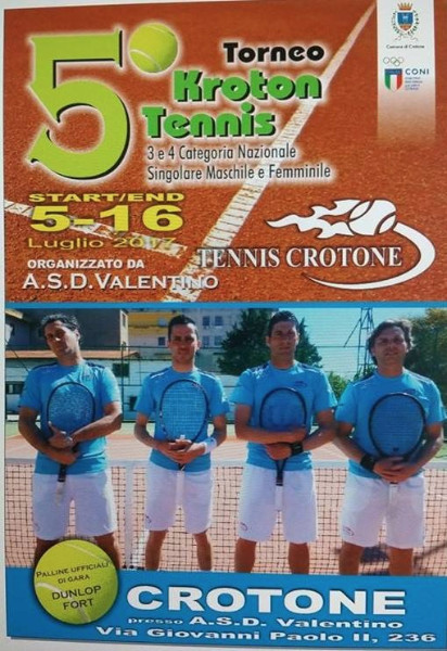 Uno sport popolare ed amato come il tennis trova la sua vetrina ideale con il torneo Kroton TennisGiusto alla quinta edizione, organizzato dalla A.S.D. Valentino con il patrocinio del Comune di Crotone e del CONI, l’evento vedrà la partecipazione dei migliori tennisti di 3° e 4° categoria nazionale, maschile e femminile, cimentarsi sui campi di Via Giovanni Paolo dal 5 al 16 luglio.