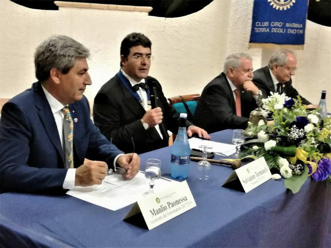 Come socio e Presidente del Rotary Club di Cirò Marina Terra degli Enotri mi impegno, così come hanno anche fatto i miei predecessori a fare tutto quello che è nelle mie possibilità e capacità con la vostra collaborazione perché ognuno di noi si possa trovare a proprio agio in un clima di amicizia spassionata che è tipica del Rotary