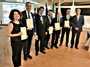 Chiamo adesso al tavolo della Presidenza i membri del mio staff per la sottoscrizione dell’impegno rotaryano la consegna di una pergamena e della rosetta di grado .