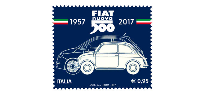 Il Ministero dello Sviluppo Economico ha emesso oggi, martedì 4 luglio 2017, un francobollo ordinario appartenente alla serie tematica “le Eccellenze del sistema produttivo ed economico” dedicato alla Fiat Nuova 500, nel 60° anniversario della produzione.