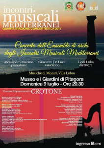 Ad alzare il sipario degli appuntamenti estivi, domenica 9 luglio alle ore 20.30 presso il Museo di Pitagora, sarà l’Ensemble di Archi degli Incontri Musicali Mediterranei, diretto da Lodi Luka, con Giovanni De Luca al sassofono e Alessandro Marano al pianoforte.