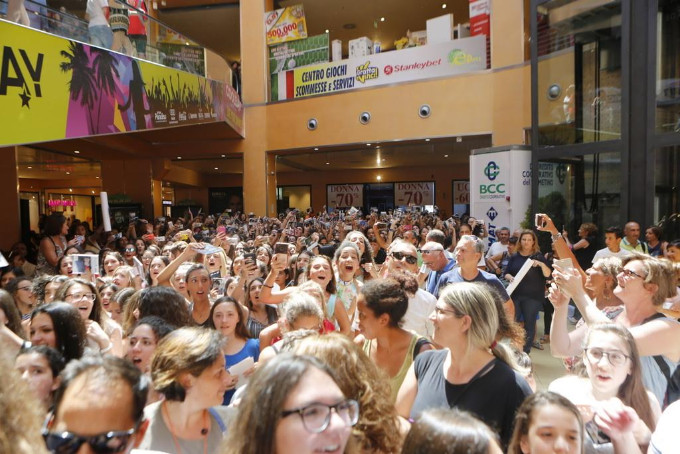 La Galleria del Centro Commerciale Due Mari è stata letteralmente presa d’assalto dalle migliaia di fans provenienti da tutta la Calabria che tenaci hanno cominciato a mettersi in fila per conoscere il loro idolo fin dalle primissime ore del giorno: le più intrepide sono arrivate intorno alle 5:30 del mattino per garantirsi la prima fila. Sventolando il suo cd le “Rikies”, così si sono autobattezzate le fan del giovane artista, hanno cantato durante l’attesa tutti i suoi brani che ad oggi sono battutissimi dalle radio. Quando finalmente l’arrivo dell’artista è stato annunciato da Domenico Milani, il noto presentatore e conduttore tv che ha intrattenuto il pubblico per l’evento, l’emozione è salita alle stelle. Tra gli applausi e un “sei bellissimo” cantato all’unisono, Riki è salito sul palco dispensando baci, abbracci, foto e autografi per tutti. Instancabile anche lui, si fermava ogni tanto solo per rinfrescarsi un po’ e ripulirsi il viso dal rossetto lasciato sulle sue guance dalle ragazze, ha avuto un sorriso per ciascun fan fino alle 22 circa. Emozioni immortalate dalle foto che saranno disponibili sulla pagina facebook ufficiale del Centro Commerciale Due Mari a partire dai prossimi giorni.