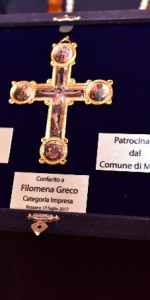 “Per la dedizione ed abnegazione alla professione di avvocato prima e successivamente la svolta verso la Calabria. Verso l’Azienda di Famiglia per la valorizzazione delle eccellenze territoriali. Per la passione e la tenacia nel portare avanti attività Culturali finalizzate alla promozione della Regione”. È questa la motivazione che si legge sulla targa consegnata all’imprenditrice calabrese.