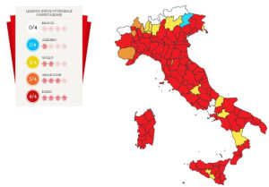 Nelle altre regioni, nel Lazio l’allarme più alto si concentrerà su tutte le province tranne Rieti (indice 1); in Friuli Venezia – Giulia su Pordenone e Udine, seguite da Trieste (livello 3); in Abruzzo su L’Aquila, Chieti e Pescara, con Teramo all’indice 3; in Liguria su Genova e Savona, preferite ad Imperia e La Spezia (livello 3). Termometro massimo in Puglia, Umbria e nelle Marche, interamente prese d’assalto, in Sicilia, dove a salvarsi è la sola Caltanissetta, mentre in Basilicata saranno sia Matera sia Potenza a registrare l’indice 4.