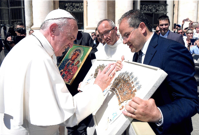 Sono orgoglioso di questa creazione che mi ha dato la possibilità di contribuire con la mia arte a scrivere un momento di storia, sia per la realizzazione dei diademi ma anche per il gemellaggio che ha visto a Crotone la presenza dei Padri Paolini, in primis il Reggente del Tribunale della Penitenzieria Apostolica Monsignor Krzysztof Nykiel, i responsabili del Santuario di Czestochova, tra cui il Procuratore Generale Padre Basilio Degorski, il Priore del Monastero di Jasna Góra Padre Marian Waligóra e Padre Michal Legan dell’Università Pontificia Giovanni Paolo II di Cracovia. Nel loro discorso hanno affermato che i diademi erano stati realizzati con ‘grande devozione e pietà’; mi gratifica ricevere queste considerazioni dai Padri Paolini, tanto a dimostrazione dell’amore che ho profuso nel realizzare questa creazione. Un altro momento che ho vissuto con gioia – conclude Affidato – è stato l’incontro in Vaticano con Papa Francesco, quando ha benedetto le nuove corone dell’immagine miracolosa della Madonna di Jasna Gora. Abbiamo fatto presente al Santo Padre che da questa creazione ci sarebbe nato successivamente il gemellaggio e lui – attento e sorridente – ci ha detto di pregare per lui e la Madonna. Momenti che mi hanno molto arricchito sia spiritualmente che artisticamente e rimarranno indelebili nel mio cuore”.