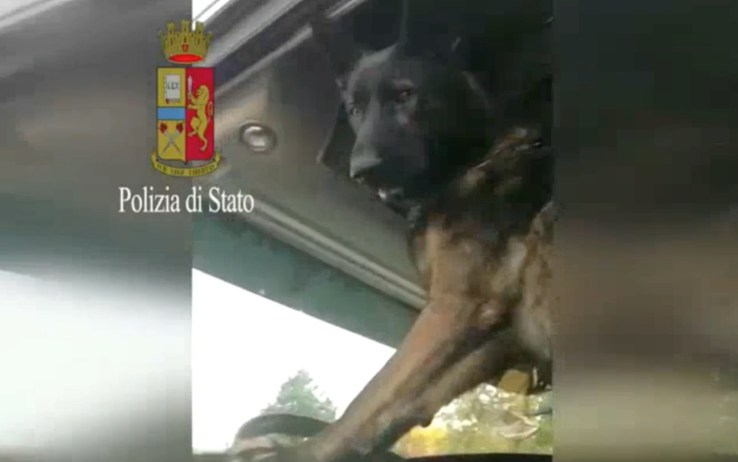 Gimbo, il cane poliziotto che suona il clacson quando trova la droga