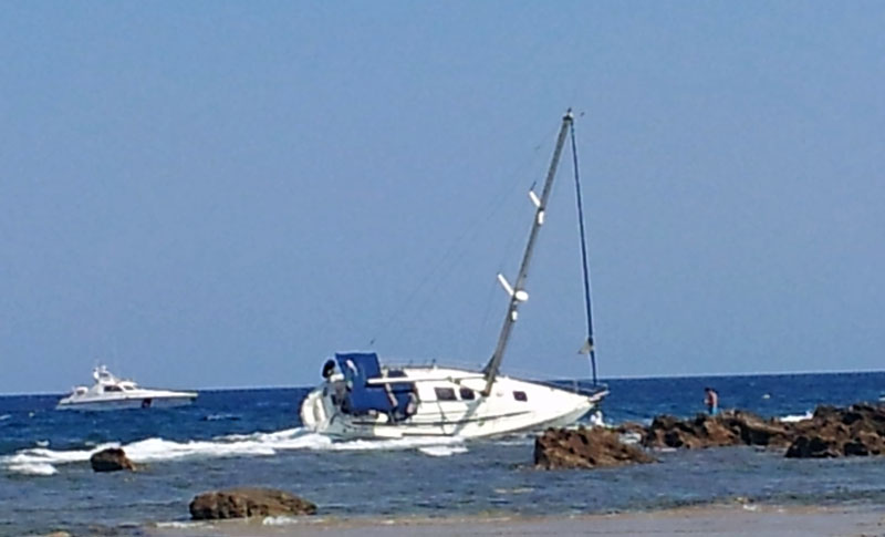 Una barca a vela incagliatasi alla foce del fiume Neto, con cinque persone a bordo tra cui una donna e due adolescenti.
