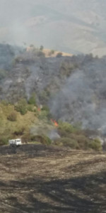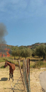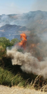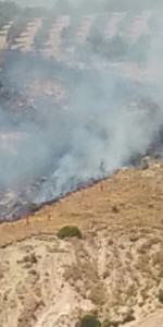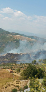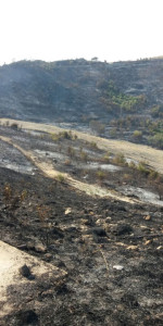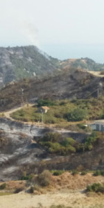 In cenere centinaia di ettari di macchia mediterranea nelle Campagne di Cirò (8)Un danno biologico inestimabile al territorio l’incendio di ieri, un patrimonio agreste in fumo che sta cambiando è cambiato radicalmente il paesaggio, tanto che il comune dovrebbe costituirsi parte lesa con denuncia contro ignoti. In cenere centinaia di ettari di macchia mediterranea in zona Campanise, Vallo, Monte Sanguigno, Coppa,Mordace, Santa Venere, in pericolo molto allevamenti di ovini caprini e bovini, dove i proprietari hanno dovuto radunarli in posti sicuri. Per poco anche un cavallo andava a fuoco se non fosse stato per la prontezza del proprietario. Incenti danni  anche alle colture ai vigneti e sopratutto uliveti. E’ il più vasto incendio  che si sia registrato dove in poche ore il forte vento di scirocco ha fatto piazza pulita di animali selvatici e macchia mediterranea. Sin dai paesi limitrofi si vede il fitto fumo che si sprigiona nell’aria rendendola irrespirabile. Sopra CIrò una nube nera e minacciosa ha ricoperto il cielo per l’intera giornata, da quando il fuoco era stato avvistato in zona zonara-Vallo sotto le Campanise, da dove qualcuno dice di aver visto un’auto bianca sospetta. È di natura dolosa è ovvio, scaturito in pieno giorno, e dove dall’alto chiunque poteva vedere la mano vigliacca del piromane di turno. Sul posto sono intervenuti i carabinieri, Calabria verde, vigili del fuoco di Crotone, un elicottero della protezione civile e un Canadair. Purtroppo il fuoco non è stato ancora spento visto le aree impervie presenti, dove i mezzi aerei continuano a fare la spola finché il giorno glielo permette.