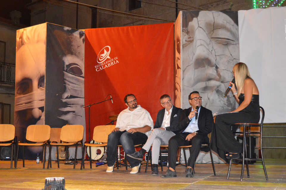 In anteprima Calabretta e Martinelli hanno annunciato che Umbriatico verrà inserito tra i borghi più belli d’Italia in un reportage televisivo. E, non a caso, si sono rivolti, mentre lo annunciavano, al produttore di “Grand tour d’Italia”, Gian Maria Miliacca, invitato dagli organizzatori come ospite. Inoltre, l’evento è valso ai numerosi spettatori anche come viaggio alla scoperta di Umbriatico. Il palcoscenico è stato allestito nella storica piazza del borgo, proprio accanto all’ex cattedrale, risalente al Medioevo e dedicata al santo vescovo Donato, per una scelta ben precisa. “Questo suggestivo contesto architettonico è il luogo ideale per tessere un intreccio fra storia, arte, natura e cultura enogastronomica”, ha chiarito lo scenografo cirotano, Alfonso Calabretta, ossia colui che ha ideato il premio e l’estate umbriaticese. “A costo zero”, come ha messo in evidenza il sindaco Pasquale Abenante. I premi sono stati offerti dal maestro orafo Michele Affidato e dall’architetto Serafina Sammarco. Lo stesso sindaco Abenante ha, quindi, rivolto un caloroso ringraziamento all’avvocato Cataldo Calabretta per aver condotto ad Umbriatico i vip premiati, facendogli conoscere dei luoghi incantevoli e consentendo al Premio di avere un parterre d’eccezione. L’ospitalità degli abitanti ha fatto il resto: nella stessa piazza, i cuochi e le cuoche locali hanno preparato i maccheroni, la carne podolica, l’insalata di pomodori freschi, i panini farciti, le crespelle. I vignaioli hanno offerto invece alla degustazione i loro ottimi vini. Queste delizie per il palato sono servite a rendere ancora più gradevole la serata, che si è svolta alla stregua di un talk show. La conduttrice Italia Caruso ha introdotto i premiati, che si sono raccontati con molta semplicità, e gli ospiti musicali, i Nica’s Dream, al secolo Pierpaolo Gangale, Alessandro Stancato, Alessio Cardinale, Noemi Vulcano. Tra i premiatori, la dirigente scolastica degli Istituti superiori di Cirò e di Cirò Marina, professoressa Rita Serafina Anania, la professoressa Berenice Morelli, il consigliere comunale Raffaele Chiarello, la manager di “Senatore Sposa”, Dina Parrilla, frate Nikolin Maria.