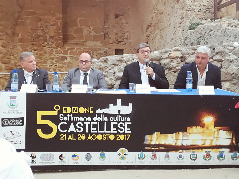 Le Castella, nel passato, fulcro di battaglie, ora, centro culturale che racconta la stessa storia che nel tempo l’ha vista da protagonista; questo castello, costruito molti secoli fa, ancora una volta protagonista di un evento culturale che riecheggia di fasti medioevali ora passati”. Inoltre, ha voluto ringraziare l’associazione “Leonardo da Vinci” di Le Castella, nella persona del suo presidente Sandra Giglio e del suo segretario Vincenzo Gentile, non solo per l’ospitalità che ha riservato all’Accademia Templare ma anche per aver organizzato la quinta settimana della cultura in maniera eccellente con dedizione e passione ed è proprio grazie all’impegno profuso da Sandra e Vincenzo che Isola di Capo Rizzuto è stata, per una settimana, perno della cultura calabrese dove ha visto l’alternanza di artisti e personaggi importi dal calibro locale e nazionale. Il ringraziamento all’Associazione “Leonardo da Vinci” è doveroso per aver voluto l’Accademia Templare al suo fianco e per avergli dedicato un intero pomeriggio.