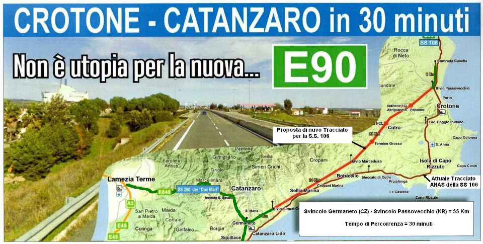 Inoltre spostare più all’interno del territorio provinciale la nuova SS 106 consentirebbe ai comuni più interni Mesoraca, Petilia Policastro, Cotronei, Petronà, Marcedusa, Roccabernarda, San Mauro Marchesato, Scandale, Santa Severina, Cutro … un rapido collegamento ai due grossi centri abitati di Crotone e Catanzaro ed un forte impulso allo sviluppo economico e sociale del territorio.