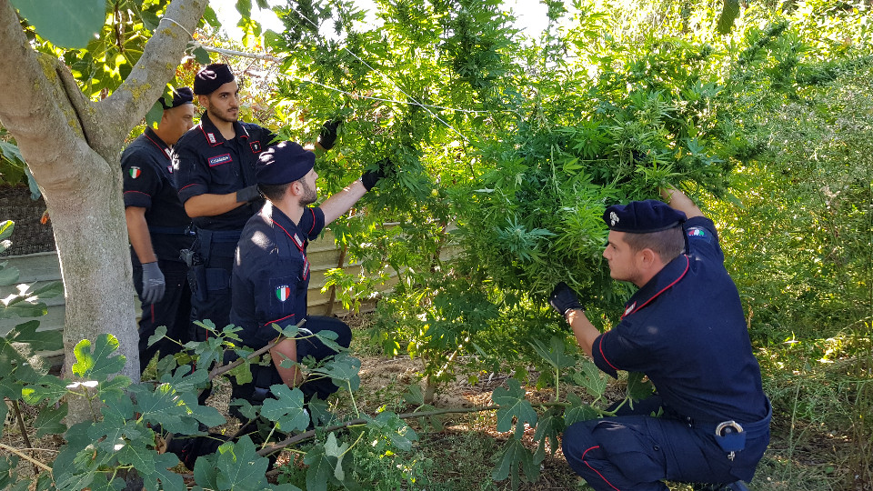 È in questo frangente che il figlio, visibilmente agitato, ammetteva di aver coltivato alcune piante di marjuana e ne indicava una decina nascoste a ridosso di un pollaio; il rastrellamento dei militari invece permetteva di rinvenire ulteriori 70 piante, particolarmente sviluppate ed in procinto di essere raccolte (alcune alte anche due metri e mezzo), abilmente occultate tra ulivi e piante da frutta.