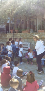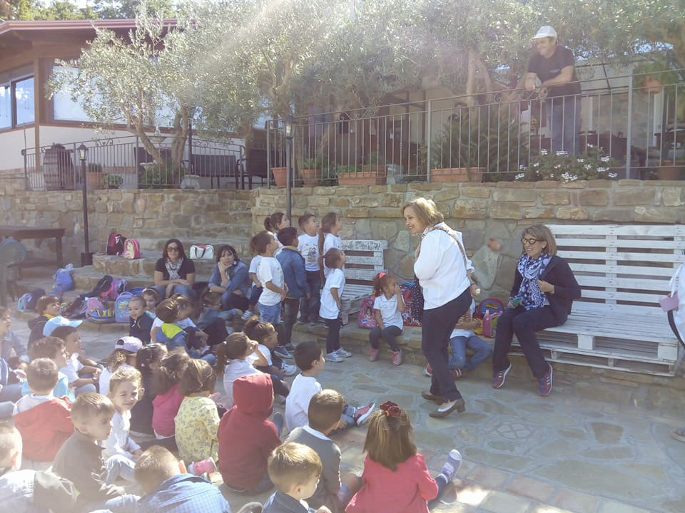 Contemporaneamente, i baby del II e III livello “, con le insegnanti Romina, Simona, Cinzia e Pamela e l’onnipresente e guida, dirigente, Lucia Sacco, hanno raggiunto l’Agriturismo Caruso” a Torretta di Crucoli, con lo scopo di stimolare l’interesse e la sensibilità dei baby sull’importanza della pace e dell’amore per ciò che ci circonda. Un’attività organizzata per promuovere diversi campi d’esperienza: il se e l’altro, corpo e movimento, conoscenza del mondo e immagine, suoni e colori. Un’uscita che oltre a stimolare l’amore per la natura, gli animali e la terra, è servita per stabilire un diretto contatto con il mondo “oltre la Scuola”, le insegnanti, i gentilissimi e partecipi titolari dell’azienda agrituristica, gli stessi baby, per stimolare l’apprendimento diretto, favorendo cos’ la consapevolezza delle responsabilità che condividiamo. Questo lo spirito e gli obiettivi che il Polo d’Infanzia Baby Kinder Park, ha voluto proporre per sollecitare una più ampia assunzione di responsabilità da parte di tutti volta a promuovere l’impegno, il protagonismo, la creatività e i comportamenti dei più piccoli in difesa e per la realizzazione dei diritti umani, della pace.