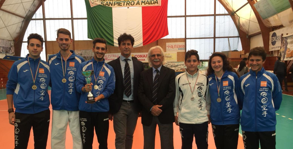 Giovanissimi (12/13 anni) di Kata e Kumite. Anche in questa occasione i pupilli della storica scuola crotoniate dell’ASD Accademia Karate Crotone, presieduta dal Maestro Enzo Migliarese, han fatto bella mostra di se conquistando in questa occasione un Oro, due Argenti ed un quinto posto. Sotto la sapiente guida del M° Rosario Stefanizzi gli alfieri pitagorici dell’AKC si sono cimentati sia nella gara a squadre con Andrea Marchio, Francesco Cesario, Luca Candigliota ed Angelo Arditi, che nel Gran Premio giovanissimi con Lumare Desirè, Francesco Scicchitano e Gabriele Crugliano. La Squadra Assoluta dell’AKC, che da decenni detiene il titolo regionale maschile, ha ancora una volta mantenuto fede all’impegno, aggiudicandosi con Andrea Marchio(60kg), Francesco Cesario (67kg), Luca Candigliota (-75kg) ed Angelo Arditi (-84kg) per l’ennesimo anno consecutivo il titolo regionale e la qualificazione per le finali nazionali previste per il mese di novembre.