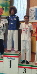 Una nota a parte e gli auguri di una pronta guarigione vanno al capitano Fabio Greco, purtroppo infortunatosi qualche giorno prima in allenamento e la cui mancanza si è fatta sentire. Il primo bel risultato della mitica squadra assoluta ha aperto la strada ai giovanissimi atleti dell’Accademia che pur alla loro prima competizione ufficiale di qualificazione hanno raggiunto un bel traguardo con Desirè Lumare la quale, nella categoria – 53kg femminile, è riuscita a salire sul podio cingendo al collo una brillante medaglia d’Argento. Di lì a poco, quando sono scesi in campo i concorrenti maschili, è giunta un’altra medaglia d’Argento ad opera di Gabriele Crugliano che nella categoria – 61kg ha veramente sfiorato di poco il massimo alloro raggiungendo comunque uno splendido 2° posto sul podio. Sfortunato invece Francesco Scicchitano il quale, purtroppo, ha dovuto accontentarsi di un onorevole quinto posto perdendo di misura la finalina per il bronzo. L’insieme dei punti accumulati da tutti è comunque bastato all’Accademia per entrare nella speciale classifica generale della manifestazione e ritirare così il trofeo del terzo posto come società. Dal M° Enzo Migliarese le più vive congratulazioni al M° Rosario Stefanizzi, agli Atleti ed tutto lo Staff dell’AKC per la grande e meritoria opera che svolgono in favore del Karate.