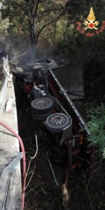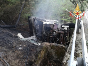 Alle ore ore 13.30 su richiesta dei Carabinieri del Comando Compagnia di Soveria Mannelli viene inviata la squadra dei vigili del Fuoco di Lamezia Terme nel comune di Motta S. Lucia per incidente stradale. Ad essere coinvolto un automezzo adibito a trasporto di legname che, per cause in corso di accertamento da parte degli enti preposti, è uscito fuori strada distruggendo diversi metri di guardrail e ribaltandosi nella scarpata adiacente la carreggiata. L’automezzo impattando sul suolo prendeva fuoco. Salvo, fortunatamente, l’autista M.G.B. di anni 57 che in evidente stato confusionale veniva lasciato alle cure del personale Suem118 che prestate le prime cure, trasferiva il malcapitato in una piazzola non molto distante dove li attendeva l’Elisoccorso per il trasporto presso presidio ospedaliero di Cosenza.Crotone: blitz della Polizia di Stato nel centro storico – luogo della movida