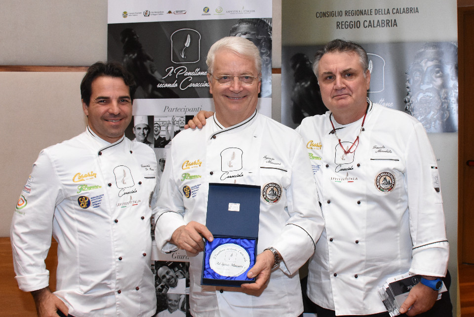 Igino Massari e Fausto MorabitoSabato 7, la manifestazione “Il Panettone secondo Caracciolo”, organizzata per il secondo anno da Levitus Italia e Chezmoibyfausto, dopo la serata di degustazioni e gara a Reggio di Calabria, il 24 settembre, ha visto l’arrivo dell’attesissimo “Maestro dei Maestri” nella Città dello Stretto.