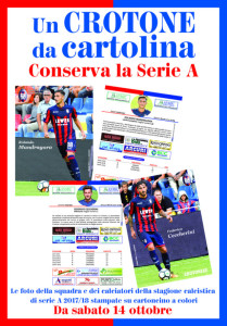 L’iniziativa è stata promossa con l’intento, in un’epoca in cui tutto è digitale, di realizzare una testimonianza storica concreta e non virtuale della partecipazione al massimo campionato di calcio italiano. Figurine che fanno un figurone è lo slogan scelto da il Crotonese perché le cartoline possono essere conservate dagli appassionati in un album, messe in cornice, fatte autografare dai diretti protagonisti per conservare un ricordo della Serie A. Un modo antico, ma più intenso per vivere la passione per il Crotone. Dopo la formazione, la seconda cartolina (con il Crotonese di sabato 21 ottobre) sarà quella di Davide Nicola, a seguire Budimir e tutti gli altri protagonisti rossoblù. Su il Crotonese un edicola giovedì sarà pubblicata la presentazione del piano dell’opera.