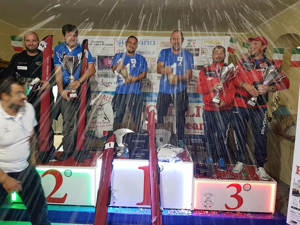 Medaglia d’argento ancora pugliese per Giuseppe IPPICO e Paolo PANARESE del team Salento Due Mari, che sebbene non abituati a gareggiare sulle coste crotonesi, grazie alla loro abilità hanno dominato il settore restando in testa per diverso tempo della gara, ottenendo un punteggio eccezionale e sfiorando davvero per pochi punti la vittoria. La medaglia di bronzo è andata invece ai marchigiani Zefferino GUIDI e Christian BUCCIONE dell’APSD San Benedetto del Tronto che autori di una prova magistrale, piazzano il record della competizione come maggior numero di pesci catturati (ben 83), concludendo stremati ma felici la competizione.