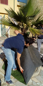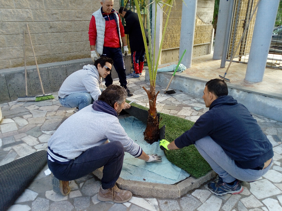 Hanno partecipato in maniera concreta all’opera la società A.M.G. Arredamenti di Ciro’ Marina, che ha coperto i costi della pianta e parte dei costi dell’erba sintetica, e il signor Potrone Luigi che ci ha fornito gratuitamente la colla necessaria a congiungere i lembi del manto erboso. Parti sociali che vogliamo ringraziare per la loro disponibilità. La partecipazione attiva delle varie componenti sociali, dalle associazioni, agli imprenditori, ai cittadini particolarmente sensibili, è l’aspetto più significativo che vogliamo rimarcare perché ha permesso di fornire un servizio utile alla collettività. Convivialità e compartecipazione insieme ad un forte senso di appartenenza permettono di innescare meccanismi virtuosi per il bene pubblico e lasciano segnali positivi alle future generazioni. Sempre stamattina ci hanno fatto visita il Consigliere comunale Antonio Pace e l’Assessore al Turismo Antonio Castiglione, con i quali è intercorso un costruttivo e piacevole dialogo e uno scambio di idee che ha gettato le basi per una futura collaborazione tra la nostra associazione e l’attuale amministrazione. Ringraziamo tutti coloro che hanno preso parte a questa giornata e ci auguriamo che altri attori sociali possano orientare le loro iniziative verso il miglioramento concreto della nostra comunità. Un saluto va al nostro Parroco Padre Peppe Pane che ha accolto da subito la nostra richiesta.