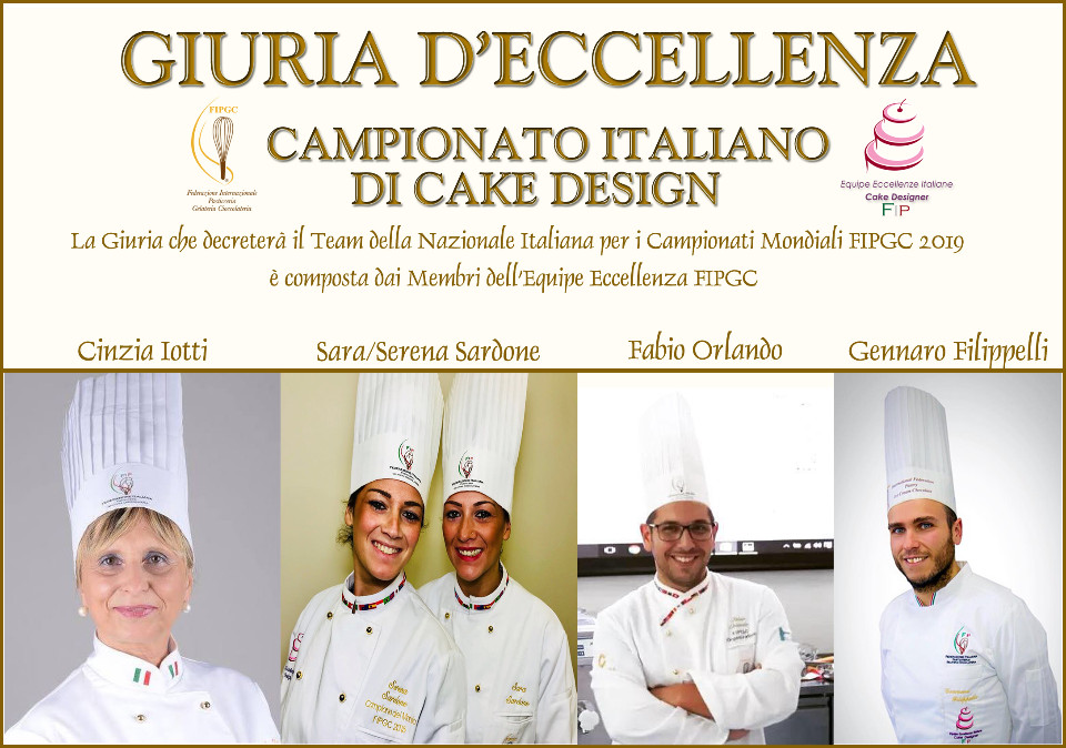 Nello specifico Gennaro Filippelli, affiancato a grandi professionisti conosciuti a livello internazionale quali Cinzia Iotti (Equipe Eccellenza Italiana FIPGC e Responsabile Nazionale Cake Design FIPGC), Sara e Serena Sardone (Equipe Eccellenza Internazionale FIPGC e Campionesse Mondiali Cake Design 2015), Fabio Orlando (Equipe Eccellenza Internazionale FIPGC e vincitore del premio Miglior Torta da esposizione del MONDO FIPGC 2017), dovrà valutare le torte in gara e scegliere il Campione Italiano Cake designer 2018 che rappresenterà l’Italia al “FIPGC Cake Designers World Championship 2019”.