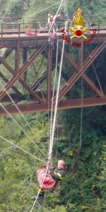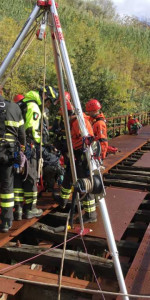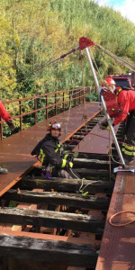 Un’addestramento su un ponte dismesso delle Ferrovie Calabro Lucane sito nel comune di San Costantino Calabro (VV), simulando il recupero di un infortunato applicando tecniche SAF avanzate con palo pescante, cavalletto cevedale e teleferiche su corda.