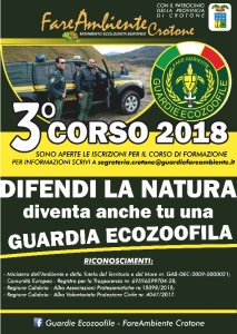 Sono aperte le iscrizioni al Corso di Vigilanza Ecozoofila patrocinato dalla Provincia di Crotone per la formazione di base delle Guardie Ecozoofile. La Direzione Provinciale di FareAmbiente Crotone per il 2018 ha emanato un bando per la nomina a Guardia Ecozoofila di 40 unità per implementare l’organico di guardie volontarie nella Provincia. Per la partecipazione al corso di formazione le aspiranti guardie dovranno essere in possesso dei requisiti previsti dall’art. 138 del Testo Unico delle Leggi di Pubblica Sicurezza. Le Guardie Ecozoofile sono operatori specializzati nella prevenzione e repressione degli illeciti contro l’ambiente e gli animali, vengono nominate con decreto prefettizio ed esercitano le funzioni di Polizia Giudiziaria ed Amministrativa nelle materie di competenza. Svolgono altresì funzioni di Protezione Civile in caso di eventi calamitosi e di sensibilizzazione ed educazione ambientale. FareAmbiente Movimento Ecologista Europeo è Associazione Nazionale riconosciuta dal Ministero dell’Ambiente e della Tutela del Territorio e del Mare e dalla Comunità Europea – Registro per la Trasparenza. La formazione delle Guardie inizia con la frequenza del corso teorico e pratico durante il quale i nostri docenti analizzano le normative di settore ed interagiscono con gli allievi al fine di massimizzare l’apprendimento di tutte le leggi ed i regolamenti costituenti il bagaglio professionale che ciascuna Guardia deve avere. Al termine del corso gli allievi devono superare un esame scritto e orale e solo dopo posso accedere al tirocinio formativo. Durante il tirocinio gli allievi “toccano con mano” quella che è l’attività operativa delle Guardie Ecozoofile, nel rispetto del codice di procedura penale e dei regolamenti di settore che, ovviamente, riservano alle sole guardie decretate il compimento di determinati atti. Con il giuramento e la consegna del relativo decreto prefettizio di nomina le Guardie entrano in servizio effettivo ed esercitano tutte le funzioni di cui sopra. Per maggiori informazioni scrivere a segreteria.crotone@guardiefareambiente.it