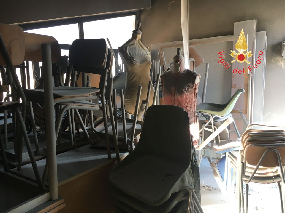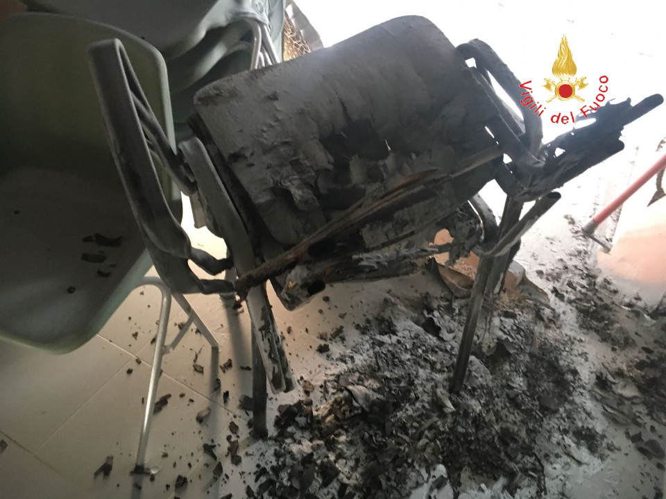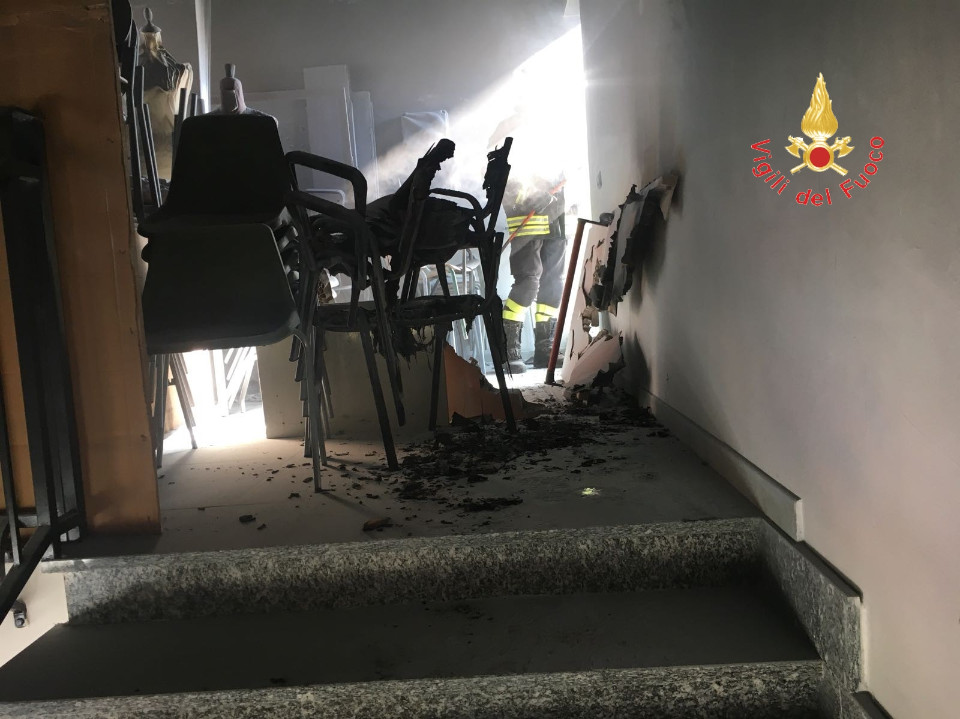 L’incendio ha interessato un vano sottoscala posto al terzo piano dell’edificio ed adibito a deposito di materiale logistico.