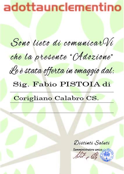 , nonché protagonista della fortunata serie televisiva “L’Isola di Pietro”, trasmessa di recente su Canale 5, ha infatti ricevuto nelle ultime ore un cospicuo quantitativo del gustoso frutto della Piana di Sibari. L’attore è stato infatti omaggiato di tale “adozione” da parte del giornalista coriglianese Fabio PISTOIA che nei mesi scorsi ha provveduto a contattare personalmente Gianni Morandi e la sua famiglia con un’apposita lettera (che si allega al presente comunicato) e illustrato la bontà dell’iniziativa, come testimoniato dal certificato d’adozione e dall’attestato omaggio (anch’essi allegati). Il tutto è stato infatti realizzato nell’ambito di “Adottaunclementino”, l’autentica novità nel settore agrumicolo locale e nazionale ideata dal brillante imprenditore cittadino Aldo SALATINO, titolare dell’Azienda Perseverantia.