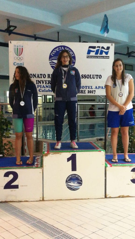 La splendida conferma è arrivata puntuale, a margine dei campionati assoluti regionali, che si sono svolti nel giro di dieci giorni fra Cosenza prima e Reggio Calabria nello scorso fine settimana, in occasione dei quali la super atleta dei NuotatoriKrotonesi ha conquistato ben cinque medaglie d’oro, nei 400 misti, nei 200 misti, nei 50 dorso, nei 100 dorso, e nei 200 dorso, dove è arrivata a soli 6 decimi dal tempo per la qualificazione ai campionati nazionali, col ragguardevole tempo di 2,18,1.