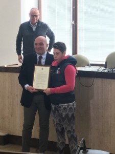 Al termine della cerimonia è stato il sindaco Pugliese che ha consegnato a Fabiana la pergamena con il testo della cerimonia, tra gli applausi dei familiari ed amici presenti e degli alunni dell’Istituto Gravina che stanno svolgendo alternanza scuola lavoro presso la Casa Comunale ed alla quale Fabiana si è rivolta direttamente incoraggiandoli ad avvicinarsi al mondo dello sport.