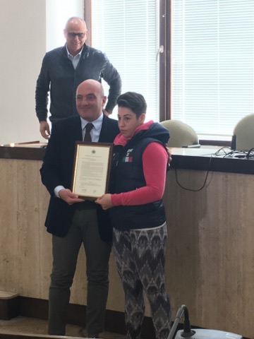 A porgere il sentito ringraziamento alla neo campionessa del mondo il sindaco Ugo Pugliese e l’assessore allo Sport Giuseppe Frisenda