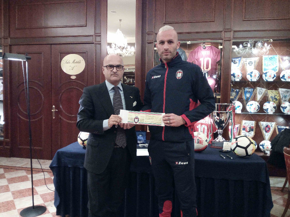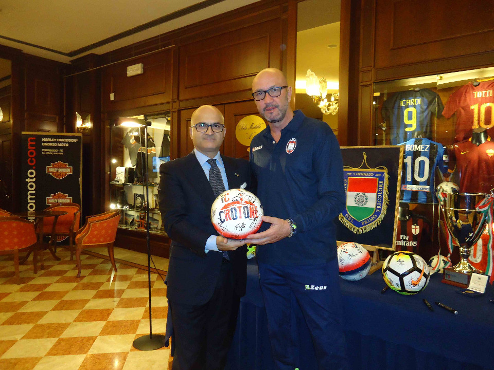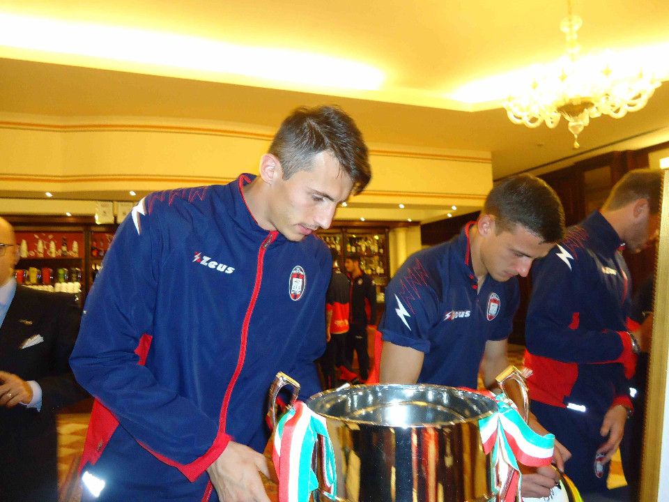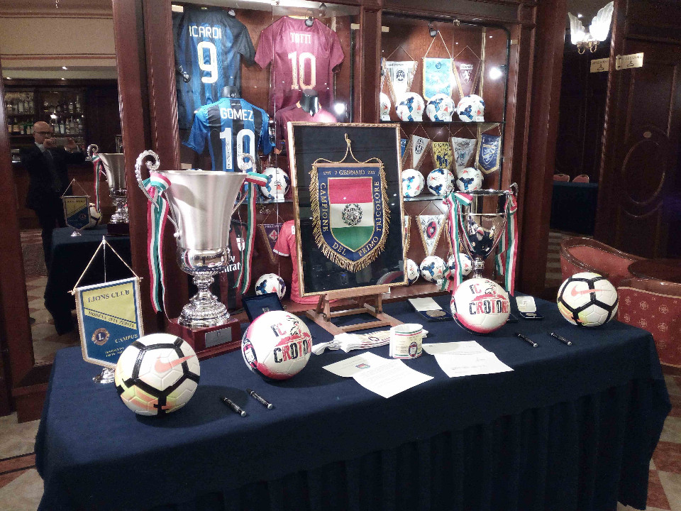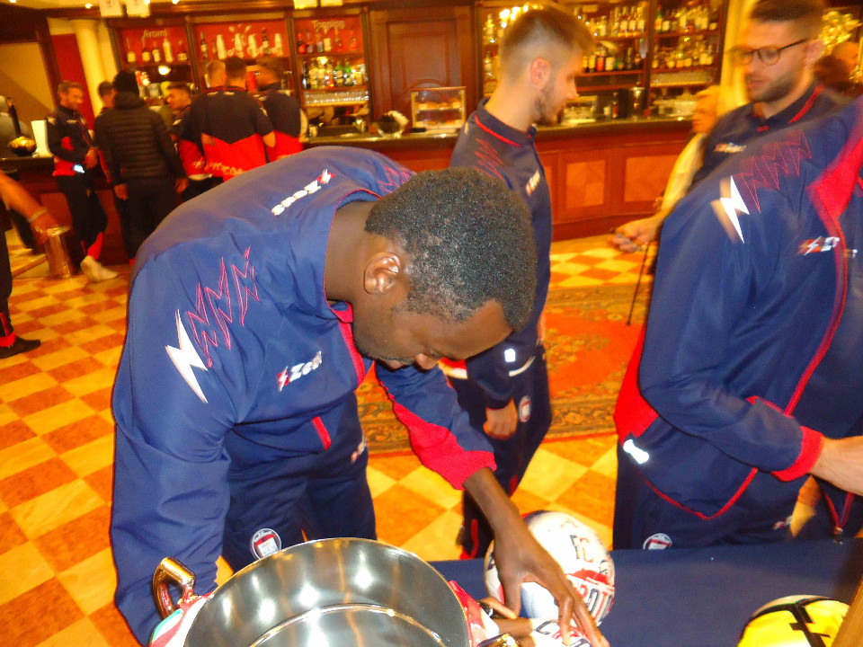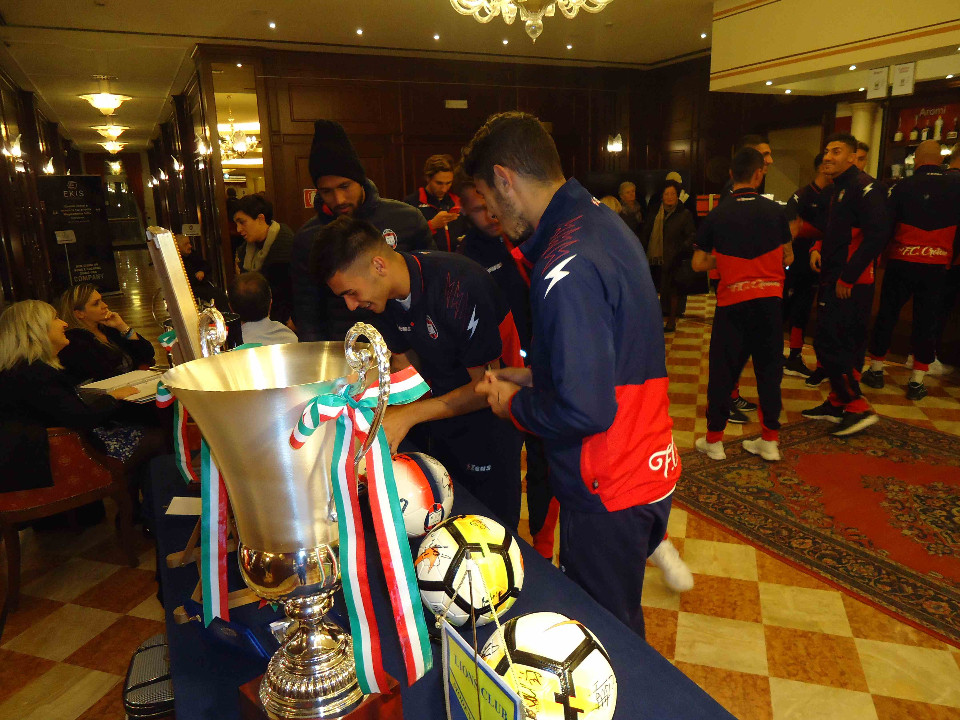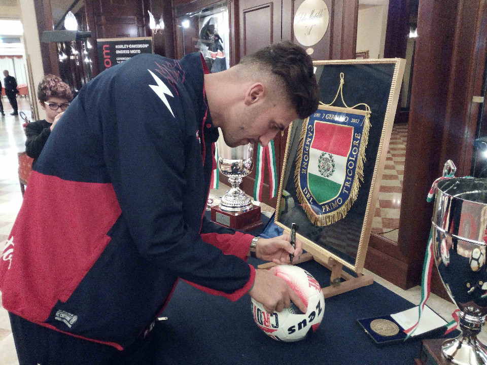 In occasione della presenza del Crotone FC a Reggio Emilia per l’incontro con il Sassuolo di domenica 10 dicembre 2017, l’Ing. Salvatore Salerno, ideatore e promotore del Premio “Campione del Primo Tricolore” e Presidente dell’omonimo Comitato, ha raggiunto la società presso il suo ritiro al fine di presentare le iniziative correlate e raccogliere le firme di tutti i giocatori, incominciando dal capitano Cordaz, e del nuovo mister Walter Zenga sui palloni che saranno destinati in beneficenza. Non solo: al capitano Alex Cordaz è stata donata una speciale fascia da capitano con le note de “Il Canto degli Italiani”.