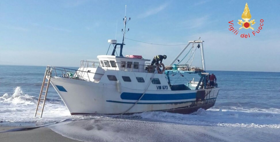 Un motopeschereccio “Santa Lucia” di circa 14 mt. in avaria in loc. Capo Suvero Lido Capo Suvero, Gizzeria in provincia di Catanzaro.Vigili del Fuoco intervengono in assistenza alla Guardia Costiera.