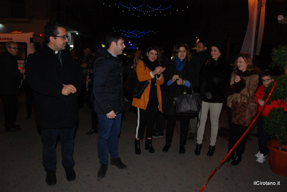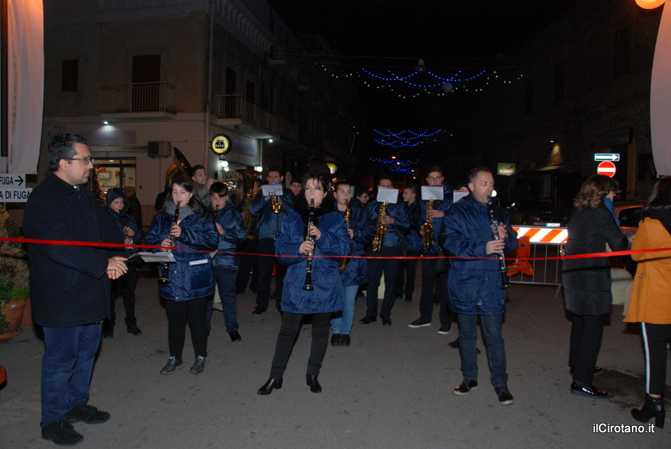 All’inaugurazione e al taglio del nastro Don Gianni Filippelli, l’Assessore Antonio Castiglione, la Consigliera Giusy Pirito, l’Assessore Caterina Bossio, l’Assessore Barbara Brunetti, la Consigliera Miriam Russo, l’Assessore Salvatore Valente e il Consigliere Antonio Pace, accompagnati dalla Banda Musicale “Città di Cirò Marina”.