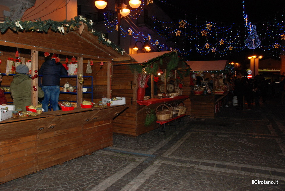 Presenti ben 15 stand, dove varie Associazioni, Commercianti, Artigiani, hanno allestito le tradizionali casette in legno, insieme anche la casa di Babbo Natale e non potevano mancare le degustazioni del prelibato Vino di Cirò delle cantine del Consorzio di Tutela Vini DOC Cirò e Melissa, accompagnato dai gustosi Prodotti tipici locali.