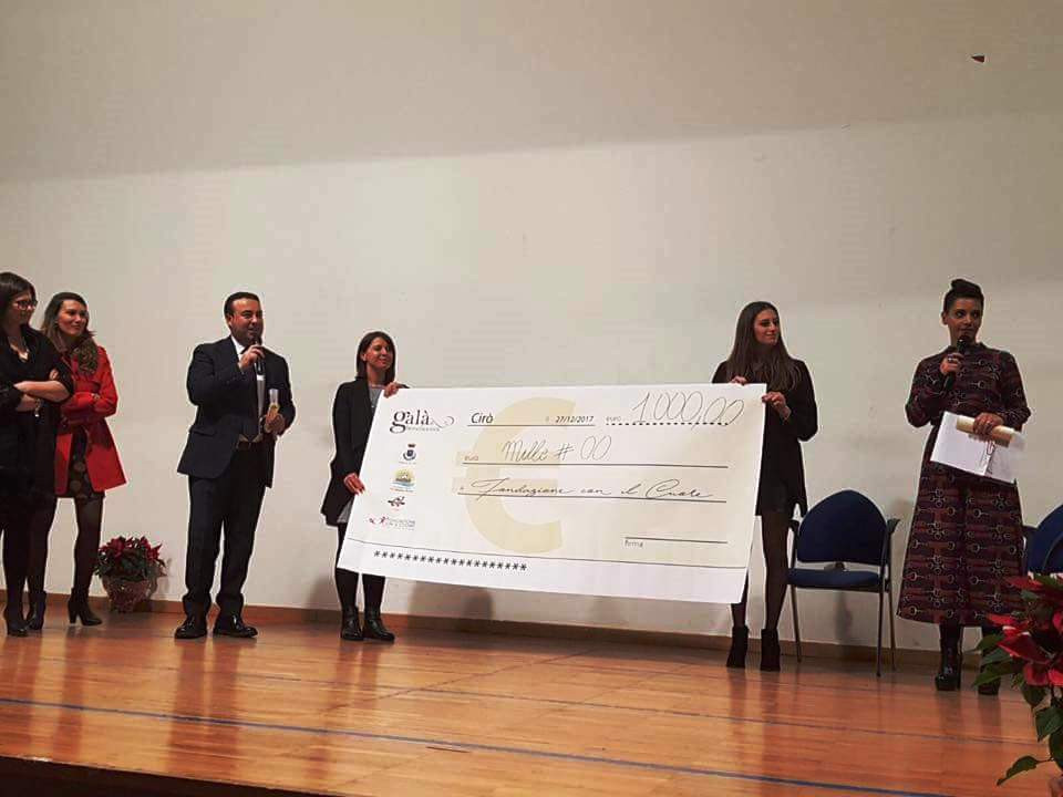 L’Amministrazione comunale in collaborazione con l’associazione culturale “Le Quattro Porte” e l’associazione “Anteas” di Cirò, hanno consegnato nella serata del “Galà di Beneficenza” svoltasi nella “sala Filottete” del Centro Servizi in localita’ Cappella a Cirò , la somma di 1000 euro alla Fondazione con il cuore – Uniti per la ricerca sul cancro (per contribuire alla realizzazione di camere bianche negli Ospedali Calabresi). Una serata all’insegna del donare soprattutto da parte della piccola grande Alessia che davanti a tutta la platea, ha testimoniato la sua esperienza per fortuna passata, un grande esempio di forza e coraggio. A presentato la serata Italia Caruso; madrina della serata è stata miss Calabria Francesca Guido. Sono intervenuti Serena Bucca che ha recitato un monologo sulla ricerca con lettura ad alta voce a cura dell’associazione LaAV. E’ intervenuto alla serata di beneficenza Alfredo Bruno cantante finalista di XFacrtor, e la cantante Chiara Ranieri. E’ intervenuto per la buona causa anche l’avvocato Cataldo Calabretta. Hanno intrattenuto il pubblico con un intermezzo teatrale l’artista di strada “!I Pagliassi” con giochi di luci. Alla fine della manifestazione il sindaco Francesco Paletta ha ringraziato tutti per il nobile gesto.