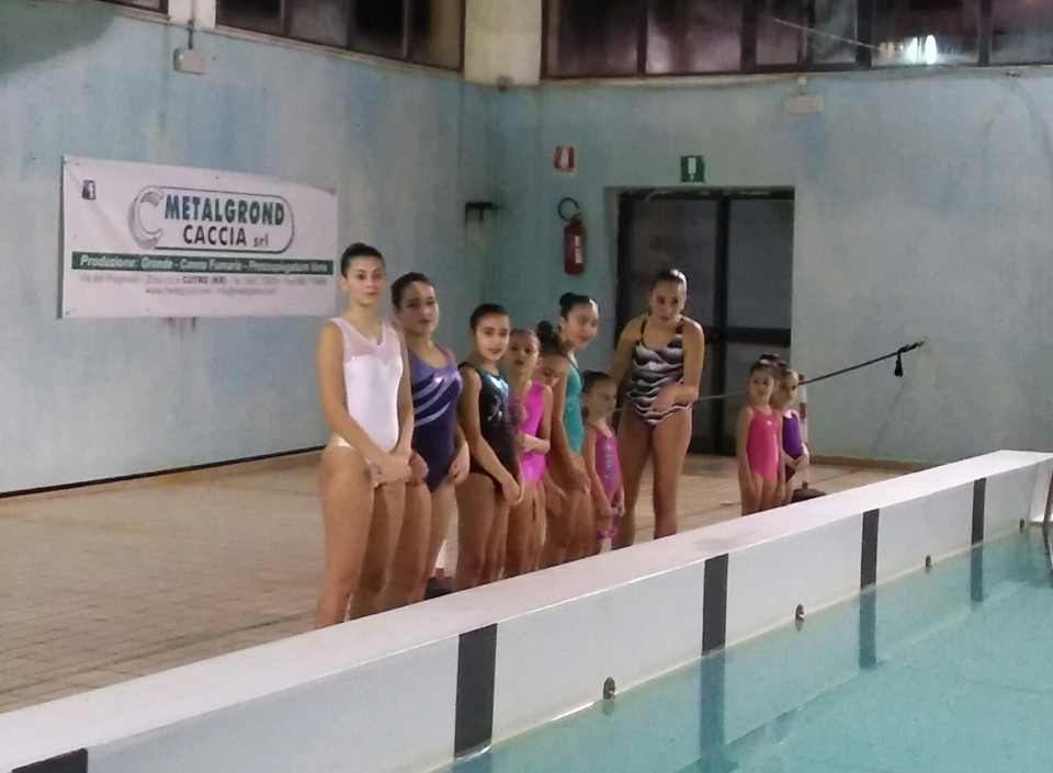 La squadra dei NuotatoriKrotonesi, unica formazione di nuoto sincronizzato in Calabria