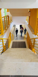 Si tratta di una struttura moderna e innovativa: aule colorate secondo i principi della cromoterapia, biblioteca, laboratori informatici, linguistici e scientifici. Realizzati tre terrazzi proiettati rispettivamente sul Castello Ducale, sulla Cupola di Sant’Antonio, e sulla splendida Piana di Sibari. Sistemi di sicurezza altamente tecnologici, oltre alla particolare attenzione al rispetto delle barriere architettoniche. 4200 mq a disposizione e 2080 mq destinato al verde e area sportiva, totale piani 2525 mq. L’area antistante ospiterà alcune opere complementari necessarie alla scuola, tra cui la realizzazione di un parterre destinato alla pallavolo e al calcetto.